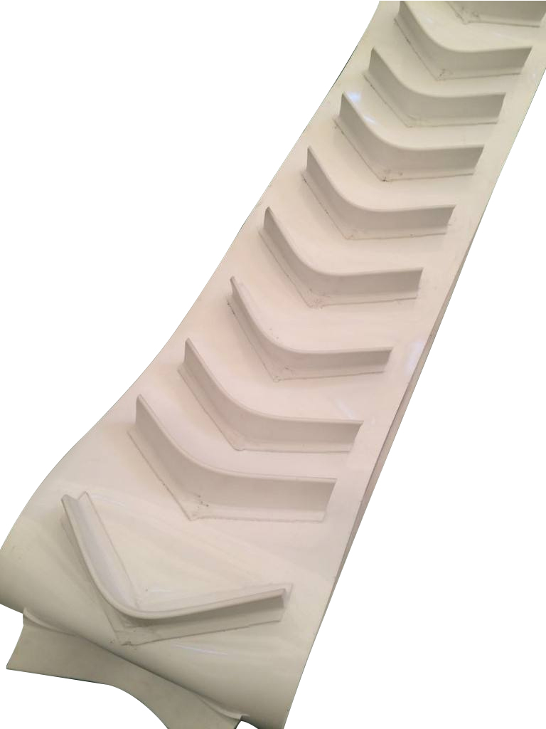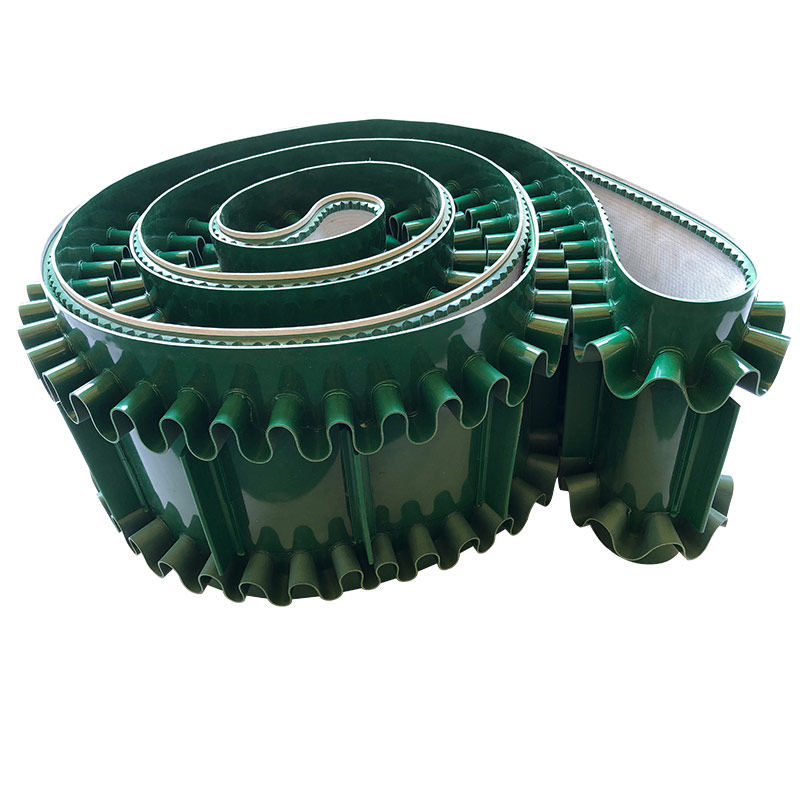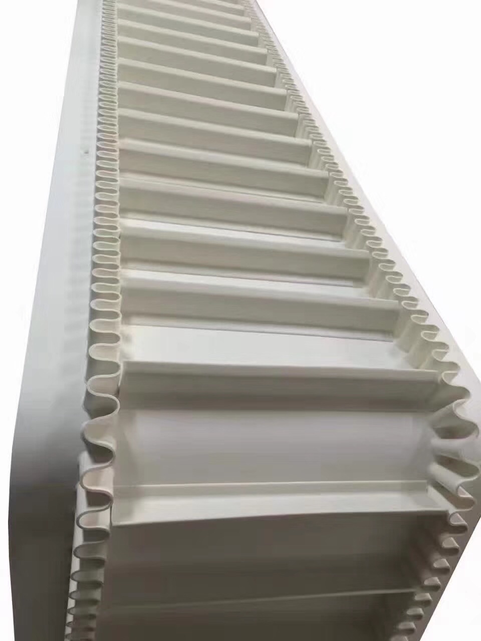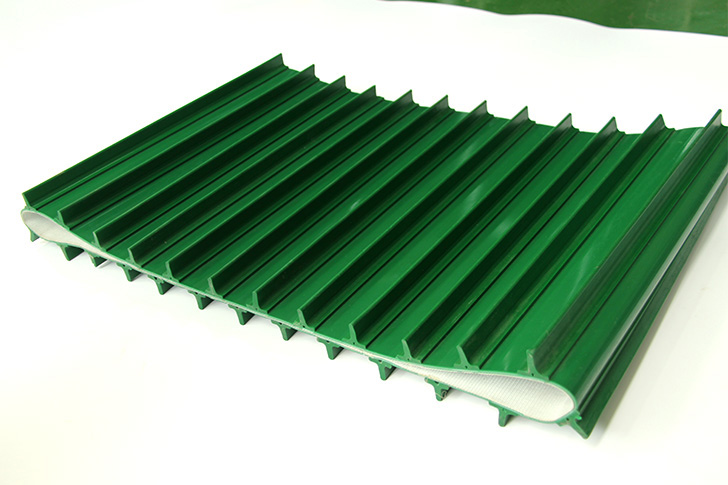 裙邊輸送帶分為:有裙邊無隔板輸送帶和有裙邊有隔板輸送帶兩種。能使各種散裝物料以0-90度作任意傾角連續(xù)輸送、具有輸送傾角大、使用范圍廣、占地面積小。無轉(zhuǎn)運點、減少土建投資、維護費用低、輸送量大等特點,解決了普通輸送帶或花紋輸送帶所不能達到的輸送角度。波狀擋邊輸送帶可根據(jù)要求設(shè)計成一套完整輸送系統(tǒng),避免了間斷輸送和復雜輸送的提升系統(tǒng)。