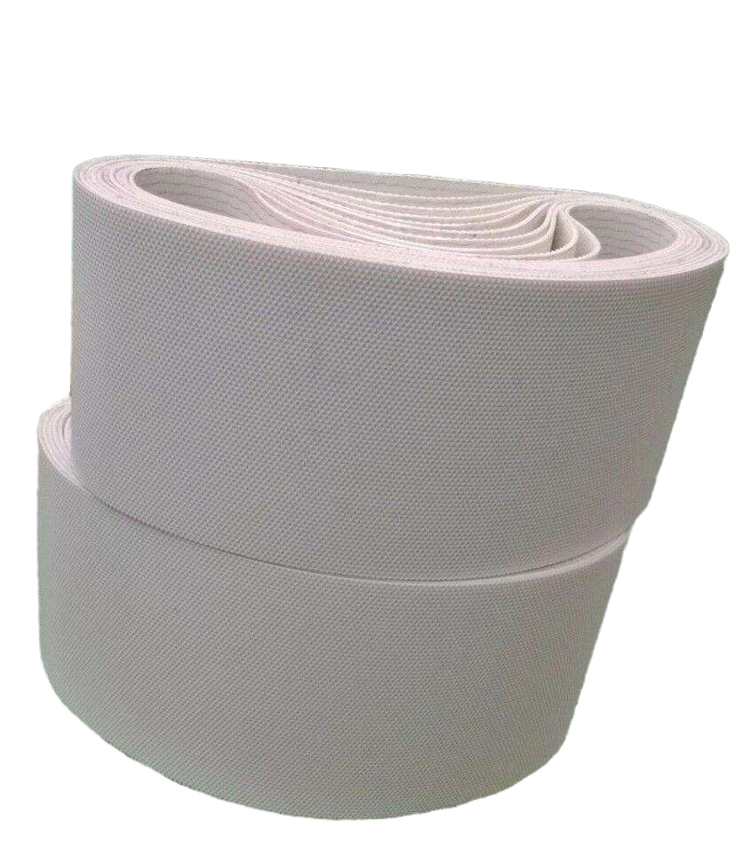 PVC輸送帶,其構(gòu)成為纖維布和PVC膠構(gòu)成。其工作溫度一般為-10度到+80度,有多種厚度,不同顏色,不同花紋,供多種不同場合的輸送。其接頭方式一般為國際齒形接頭、搭接或打鋼扣,橫向穩(wěn)定性良好適宜各種復(fù)雜環(huán)境下傳輸。